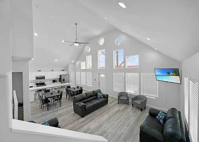 Durante la estancia en esta villa, los huéspedes pueden explorar lugares populares como la Playa Ramada y el Parque Acuático Harold's Fun Town, que se encuentran a unos 25 minutos a pie de la propiedad y 3 km de distancia, respectivamente.